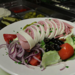 House greens with pinwheels of ham, salami, capicola & provolone cheese. Served with Garlic Rolls & Choice of Dressing.
