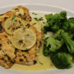 Egg battered sautéed chicken breast with lemon, herbs, butter & white wine sauce