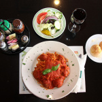 An old Italian tradition, round-shaped tender pasta, filled with a special blend of ricotta cheese, covered with our own tomato sauce, melted mozzarella & parmesan cheese.