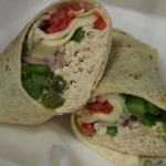 Grilled chicken wrap with roasted peppers, mushrooms, red onions, spinach & balsamic.