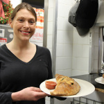Sliced gyro meat on a toasted pita with lettuce, tomato, onion & homemade cucumber sauce