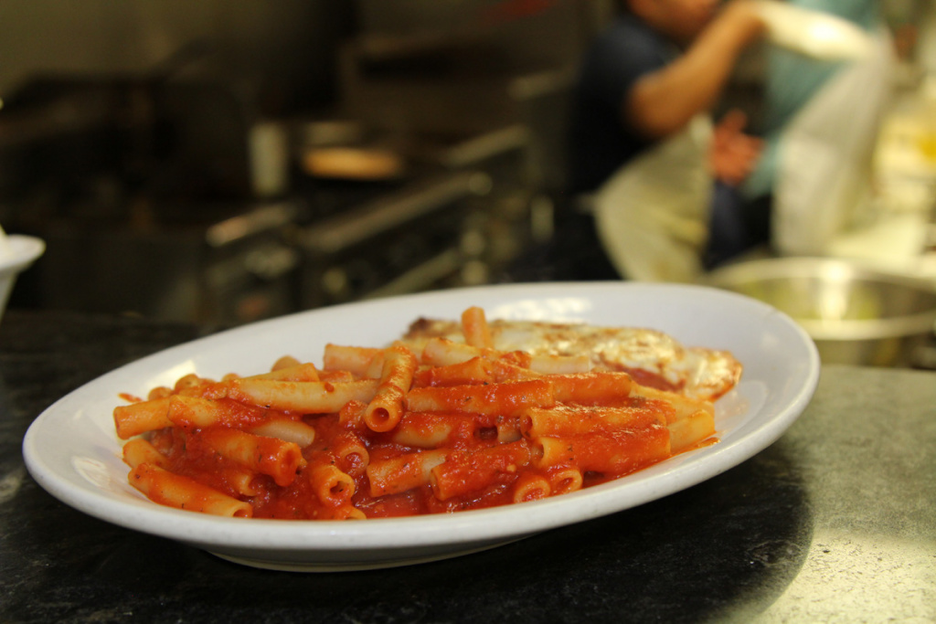 Penne pasta covered with a mixture of rich ricotta, melted mozzarella, parmesan cheese & tomato sauce.