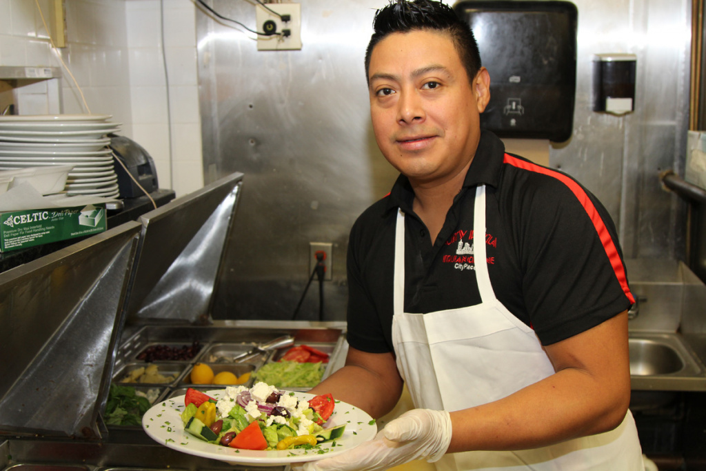 Romaine lettuce, tomato, onions, cucumbers, pepperoncini, kalamata olives & feta cheese. Served with Garlic Rolls & Choice of Dressing.